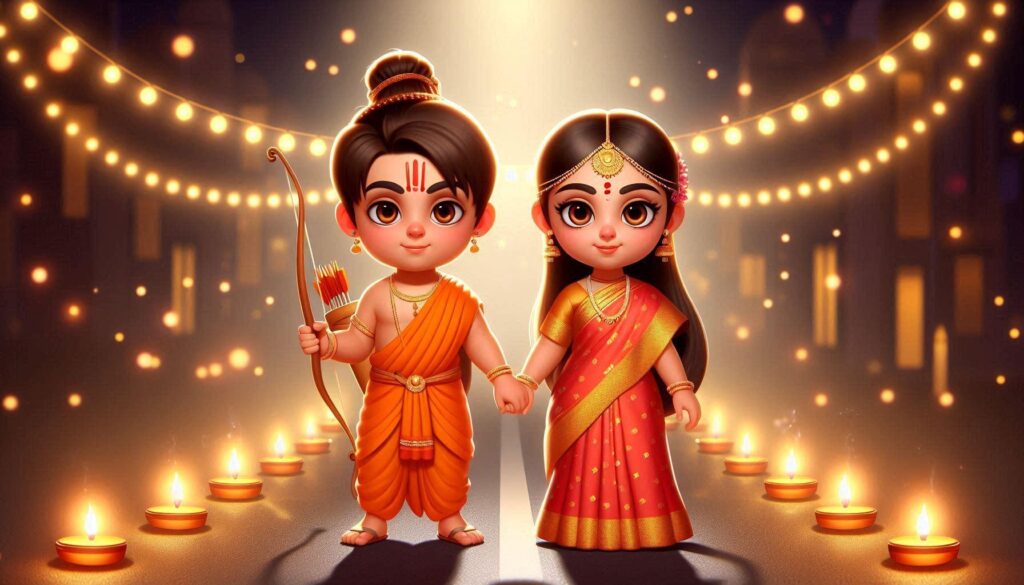 ભગવાન શ્રી રામ, માતા સીતા અને લક્ષ્મણ જી નો વનવાસ પુરો થવાં નું પર્વ એટલે દિવાળી.