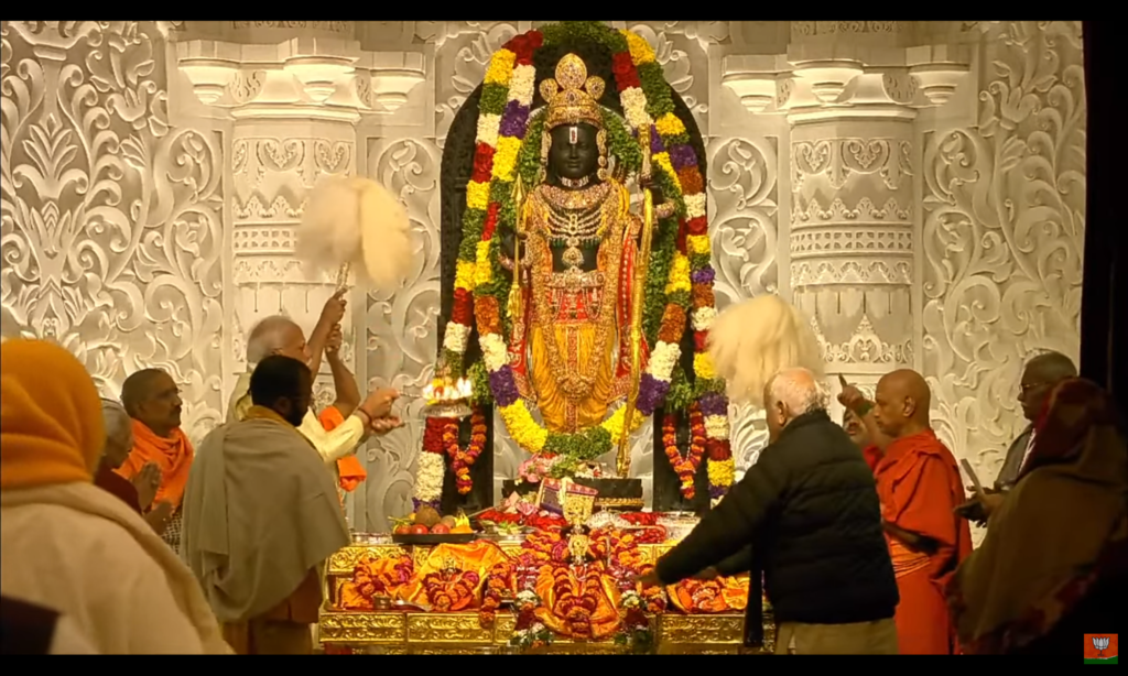 અયોધ્યાની પવિત્ર ભુમિ ઉપર લગભગ ૫૦૦ વર્ષનાં સંઘર્ષ પછી ભગવાન શ્રી રામનાં મંદિરનું નું પુનઃનિર્માણ થયું છે. આજનો દિવસ ૨૨ જાન્યુઆરી ૨૦૨૪ એ ભારતનાં ઈતિહાસમાં સૌથી મહત્વપૂર્ણ દિવસોમાંનો એક દિવસ ગણાશે. આજે ભગવાન શ્રી રામ લલ્લાની મુર્તિ ની પ્રાણ પ્રતિષ્ઠા ભારતના યશસ્વી પ્રધાન મંત્રી શ્રી નરેન્દ્રભાઈ મોદીના હસ્તે વૈદિક મંત્રોચ્ચાર સાથે કરવામાં આવી.